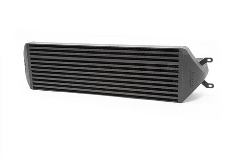 Our industry leading bar and plate core is an increase of 113% in volumetric capacity and an increase of frontal surface area of over 57% than the OEM intercooler/Heat exchanger. FMINT28 is the largest currently available on the market. The inlet and outlet sizes have both been increased in diameter, the hot side from 50mm to 60mm giving a volumetric increase of over 44% from the OEM intercooler, and the cold side from 50mm to 63mm giving a volumetric increase of over 59% from the OEM intercooler.