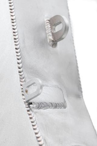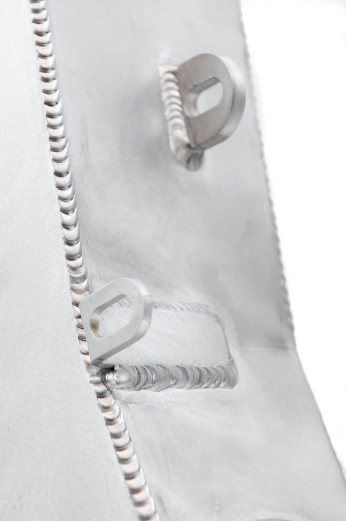 - 3″ (76mm) ID hose connections with large volume end tanks for very low flow restriction and pressure differences under high boost.